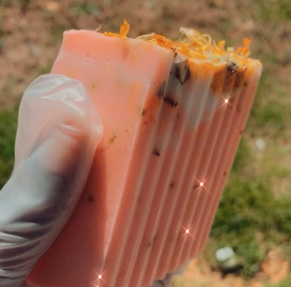 Treat your Yoni with this gentle soap bar. I infused Olive Oil with Tea Tree to promote proper hormone function. We added our special infused oil with Apple Cider Vinegar, Shea and aloe Vera and the healing Organic Calendula Flower and created a bar that will help  balance your feminine pH.
